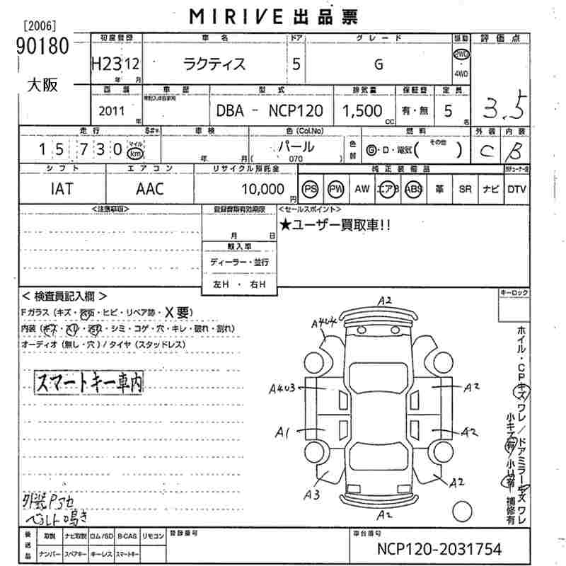 Toyota Ractis, 2011 года - Лот№90180 ★3.5