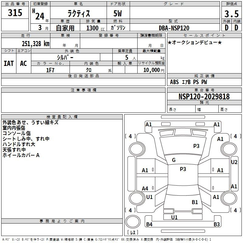 Toyota Ractis, 2012 года - Лот№315 ★3.5
