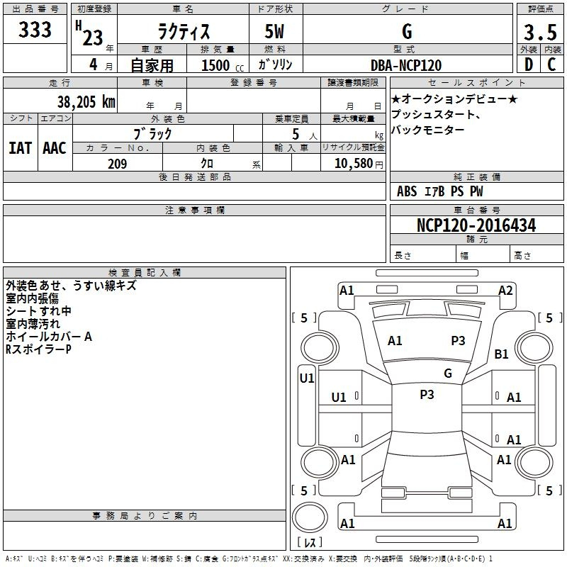 Toyota Ractis, 2011 года - Лот№333 ★3.5