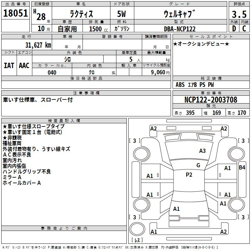 Toyota Ractis, 2016 года - Лот№18051 ★3.5