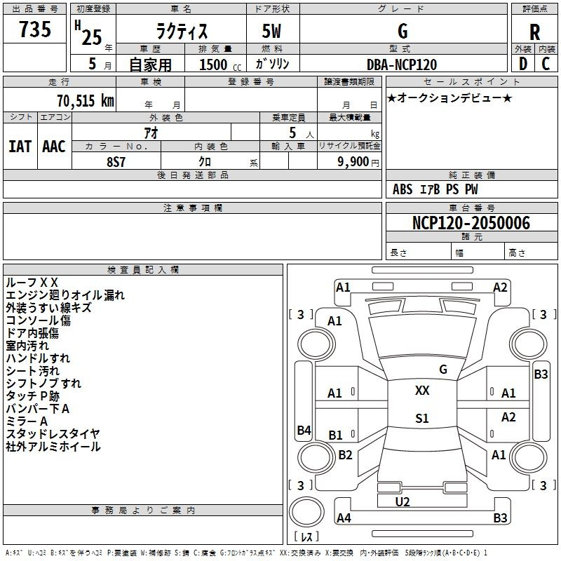 Toyota Ractis, 2013 года - Лот№735 ★R