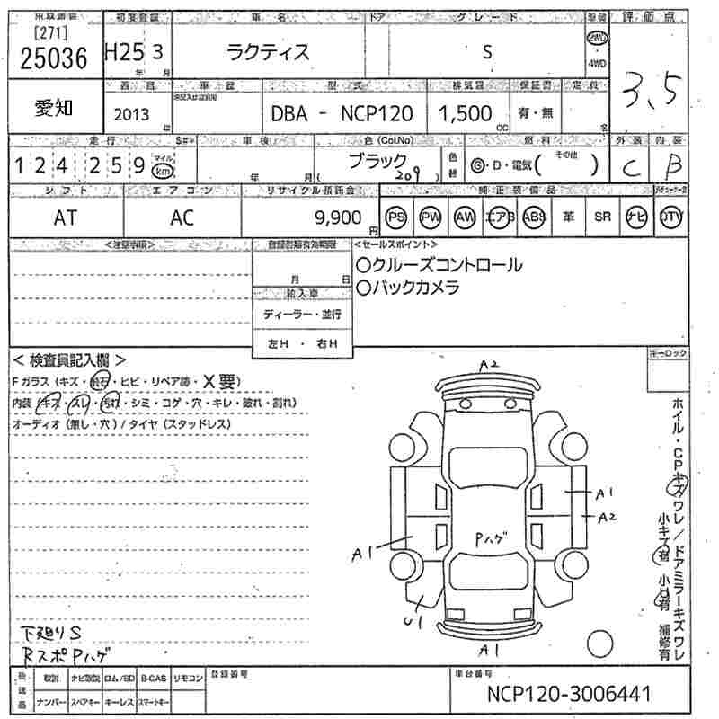 Toyota Ractis, 2013 года - Лот№25036 ★3.5
