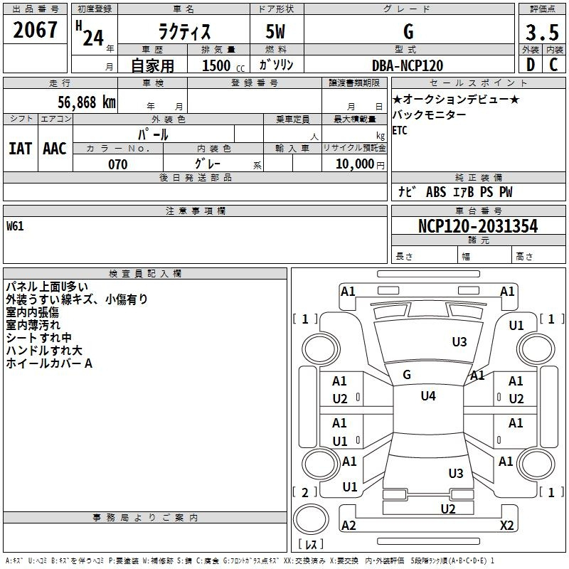 Toyota Ractis, 2012 года - Лот№2067 ★3.5