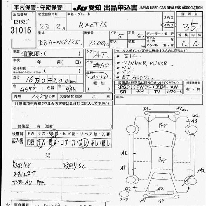 Toyota Ractis, 2011 года - Лот№31015 ★3.5