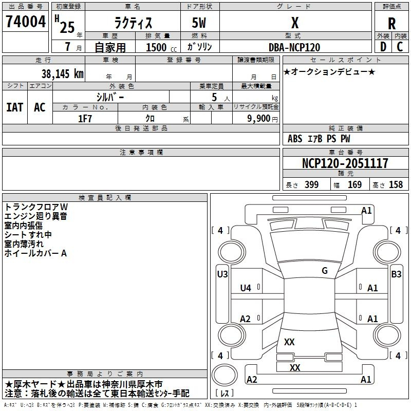 Toyota Ractis, 2013 года - Лот№74004 ★R