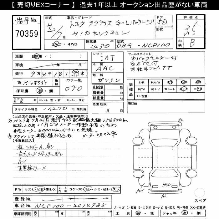 Toyota Ractis, 2010 года - Лот№70359 ★3.5