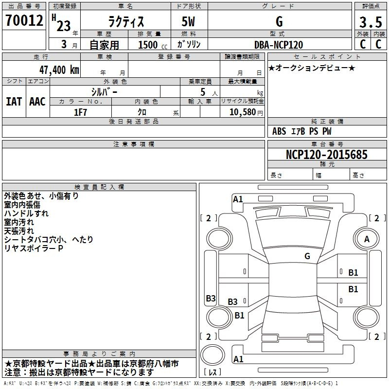 Toyota Ractis, 2011 года - Лот№70012 ★3.5