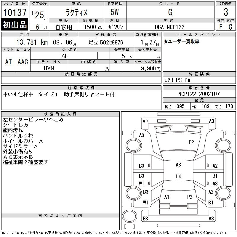 Toyota Ractis, 2013 года - Лот№10137 ★3