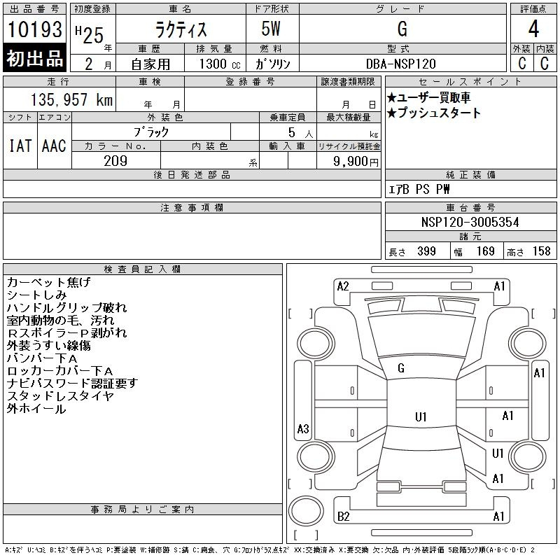 Toyota Ractis, 2013 года - Лот№10193 ★4
