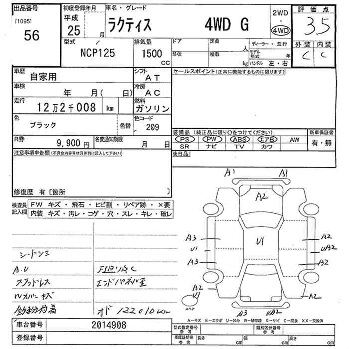 Toyota Ractis, 2013 года - Лот№56 ★3.5