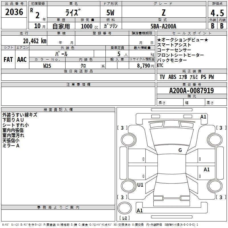 Toyota Raize, 2020 года - Лот№2036 ★4.5