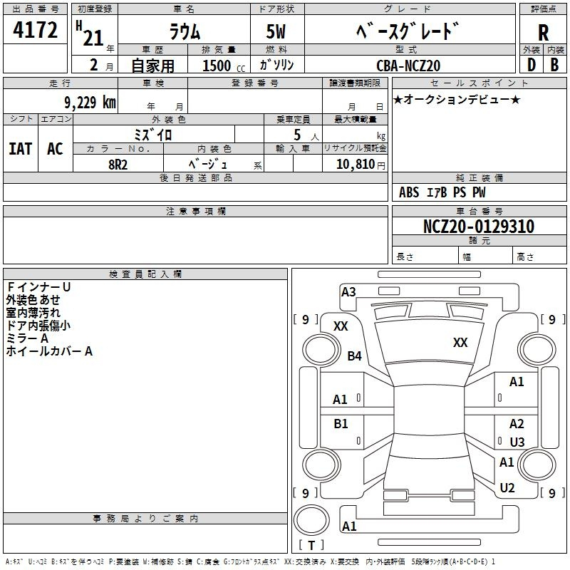 Toyota Raum, 2009 года - Лот№4172 ★R