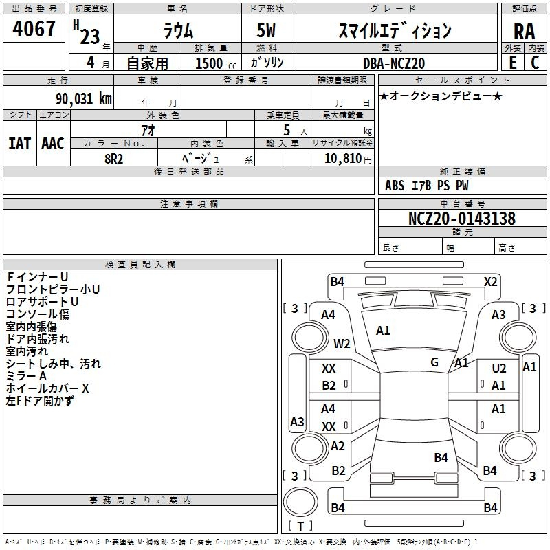 Toyota Raum, 2011 года - Лот№4067 ★RA