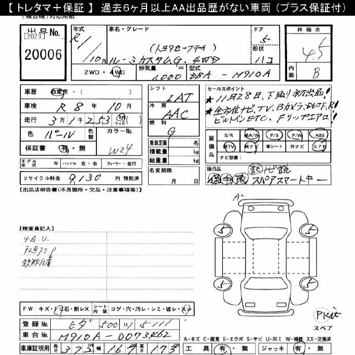 Toyota Roomy, 2019 года - Лот№20006 ★4.5