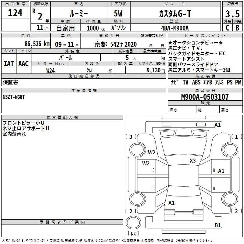 Toyota Roomy, 2020 года - Лот№124 ★3.5