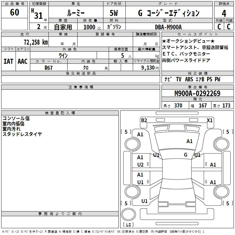 Toyota Roomy, 2019 года - Лот№60 ★4