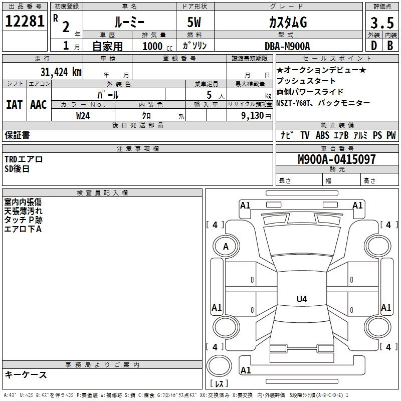 Toyota Roomy, 2020 года - Лот№12281 ★3.5