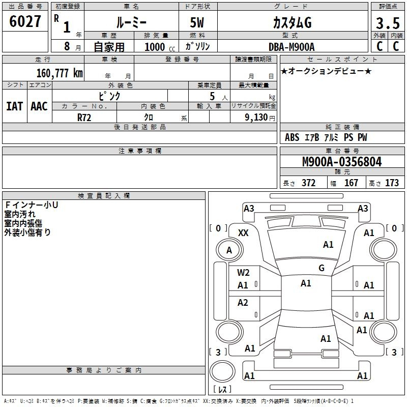 Toyota Roomy, 2019 года - Лот№6027 ★3.5
