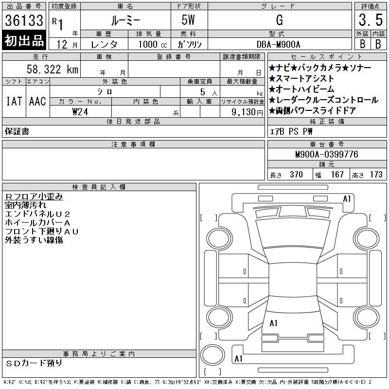 Toyota Roomy, 2019 года - Лот№36133 ★3.5