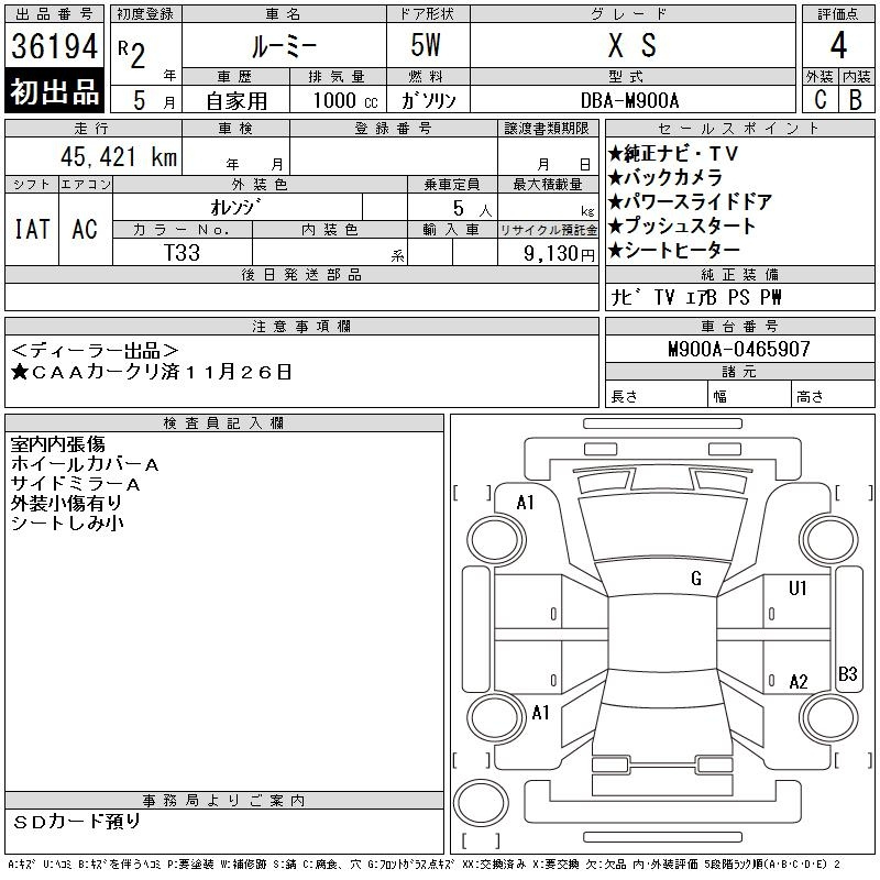 Toyota Roomy, 2020 года - Лот№36194 ★4