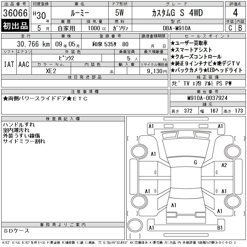 Toyota Roomy, 2018 года - Лот№36066 ★4