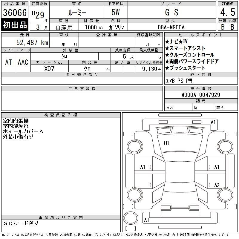 Toyota Roomy, 2017 года - Лот№36066 ★4.5