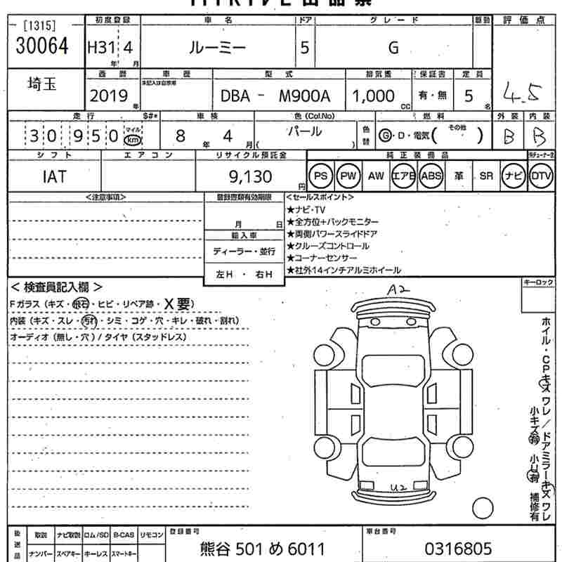 Toyota Roomy, 2019 года - Лот№30064 ★4.5