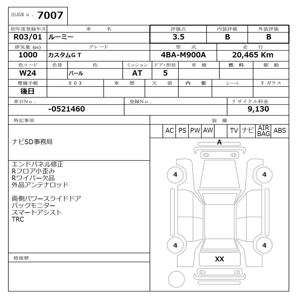 Toyota Roomy, 2021 года - Лот№7007 ★3.5