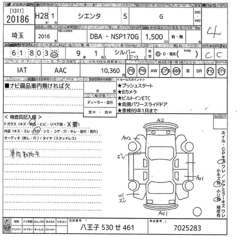 Toyota Sienta, 2016 года - Лот№20186 ★4