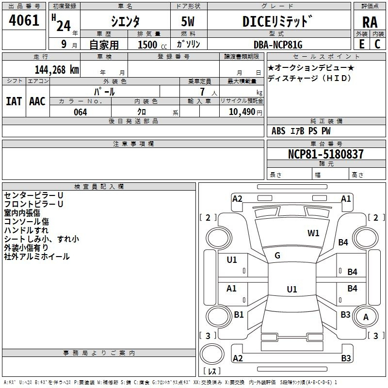 Toyota Sienta, 2012 года - Лот№4061 ★RA