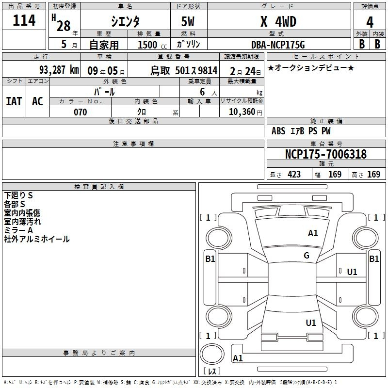 Toyota Sienta, 2016 года - Лот№114 ★4