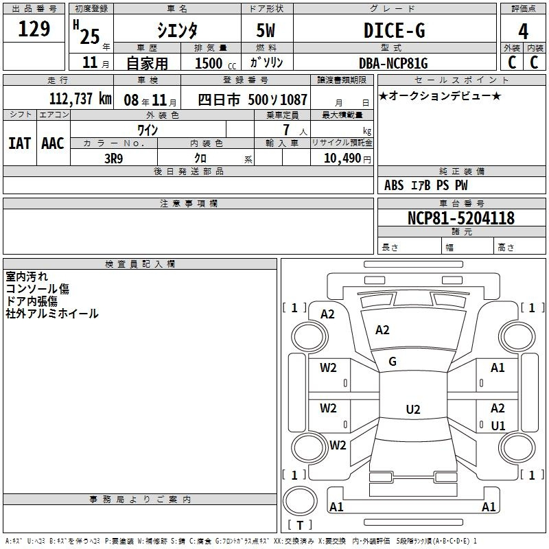 Toyota Sienta, 2013 года - Лот№129 ★4