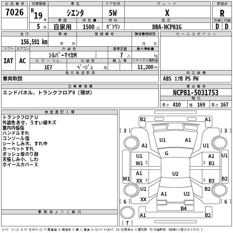Toyota Sienta, 2007 года - Лот№7026 ★R