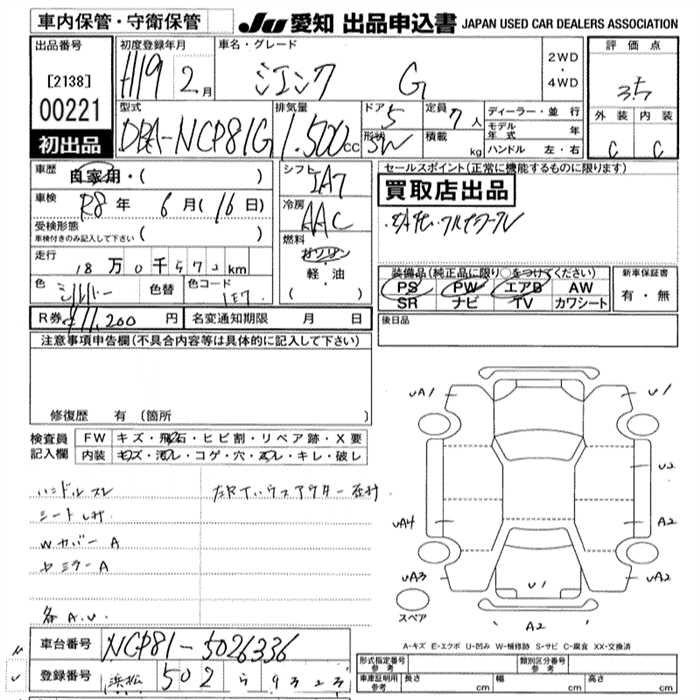 Toyota Sienta, 2007 года - Лот№221 ★3.5