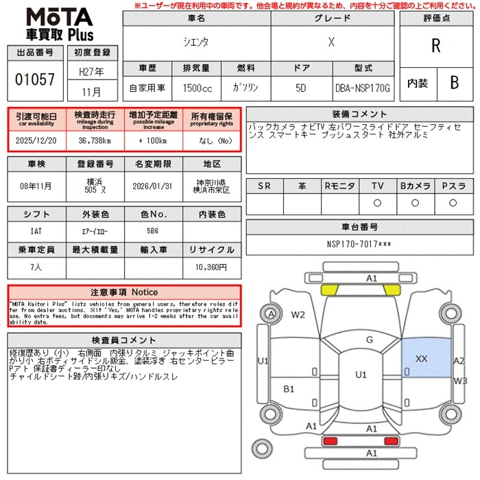 Лот№1057 10 Декабря 2025 года MOTA Kuruma Kaitori