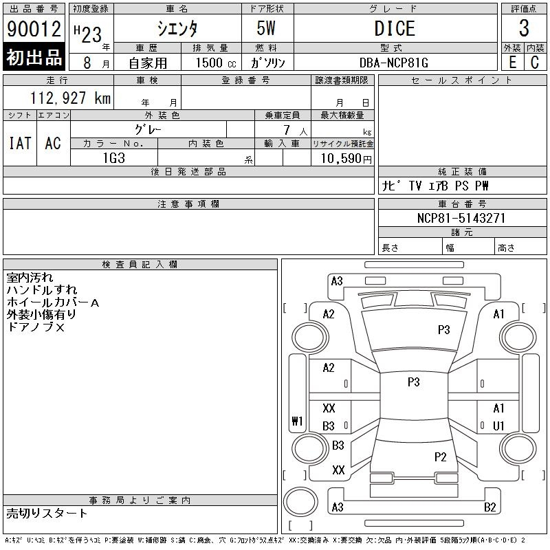 Toyota Sienta, 2011 года - Лот№90012 ★3