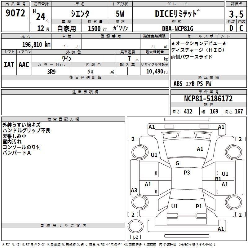 Toyota Sienta, 2012 года - Лот№9072 ★3.5