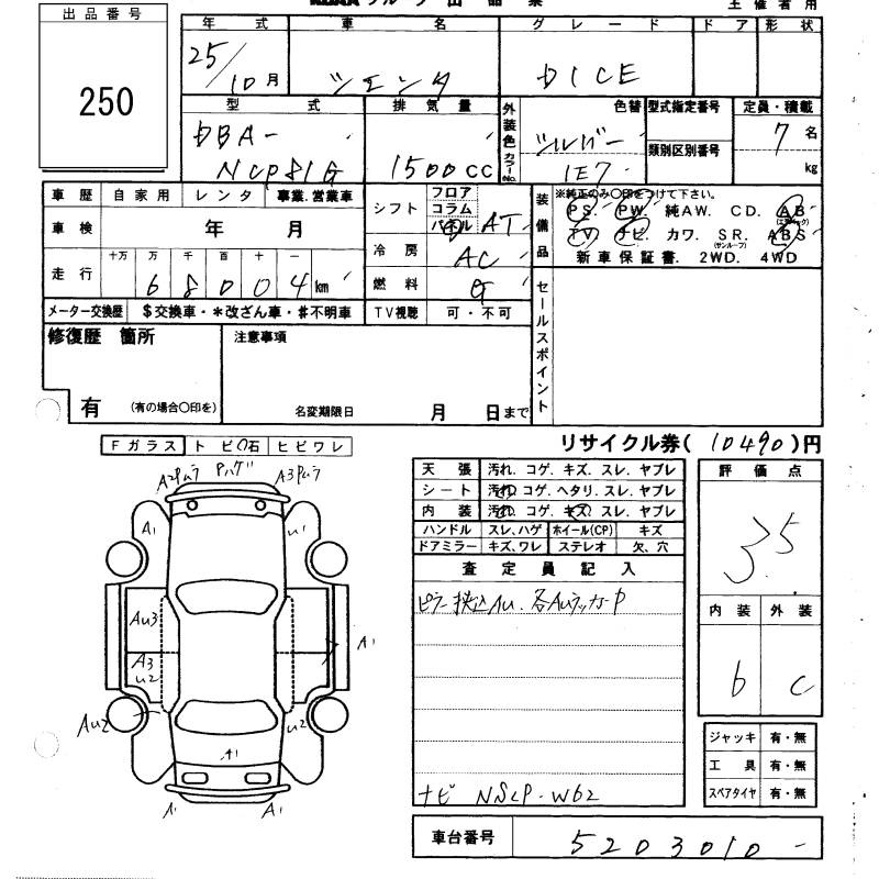 Toyota Sienta, 2013 года - Лот№250 ★3.5