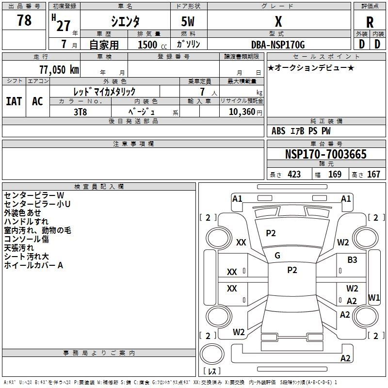 Toyota Sienta, 2015 года - Лот№78 ★R