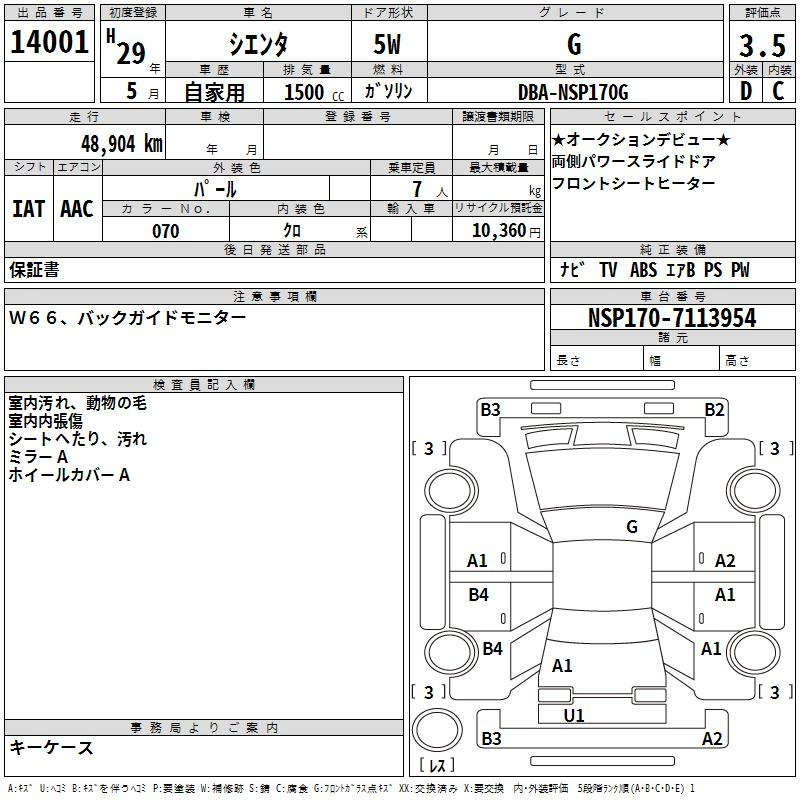 Toyota Sienta, 2017 года - Лот№14001 ★3.5
