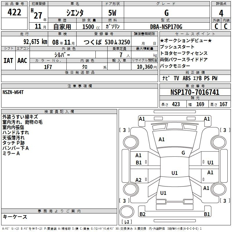 Toyota Sienta, 2015 года - Лот№422 ★4