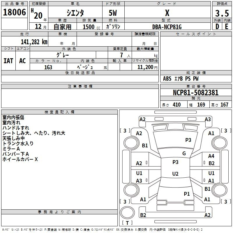 Toyota Sienta, 2008 года - Лот№18006 ★3.5