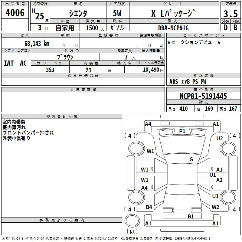 Toyota Sienta, 2013 года - Лот№4006 ★3.5