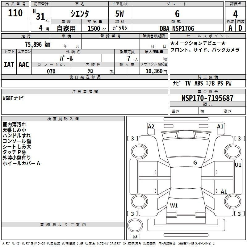 Toyota Sienta, 2019 года - Лот№110 ★4