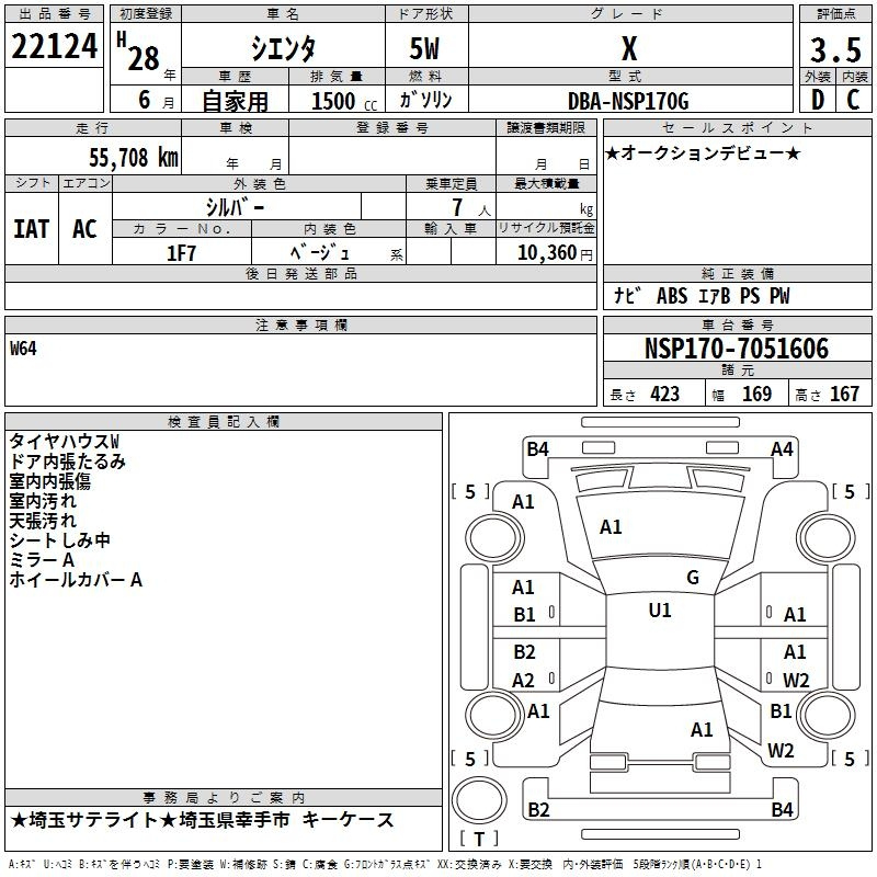 Toyota Sienta, 2016 года - Лот№22124 ★3.5