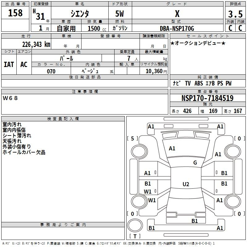 Toyota Sienta, 2019 года - Лот№158 ★3.5