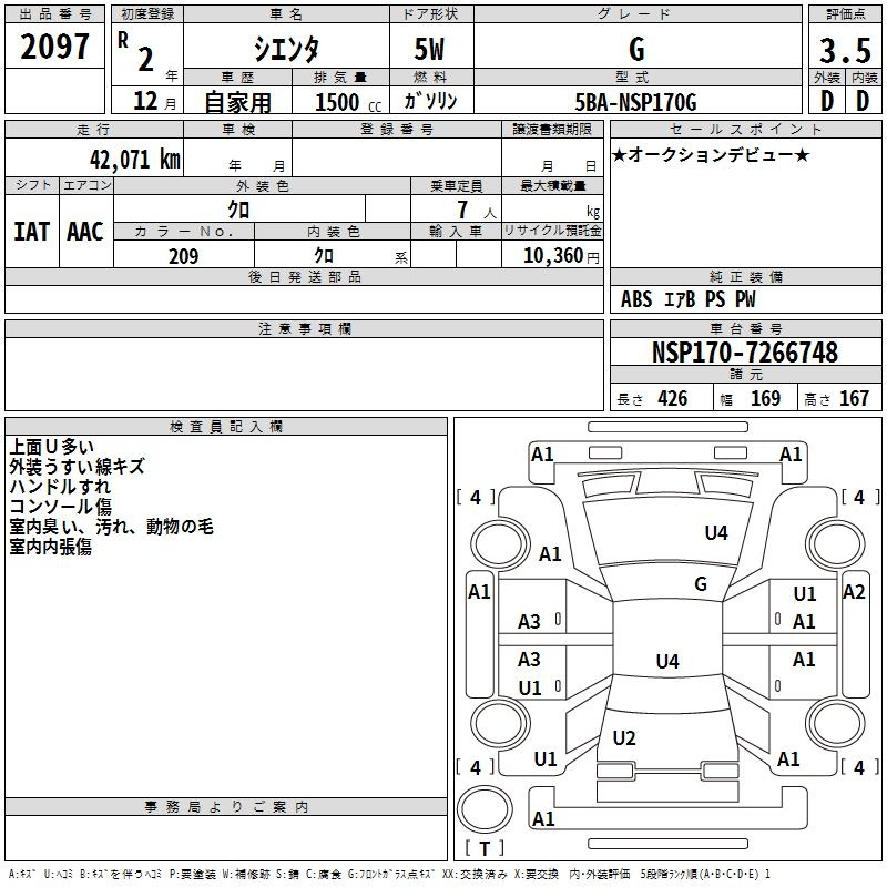 Toyota Sienta, 2020 года - Лот№2097 ★3.5