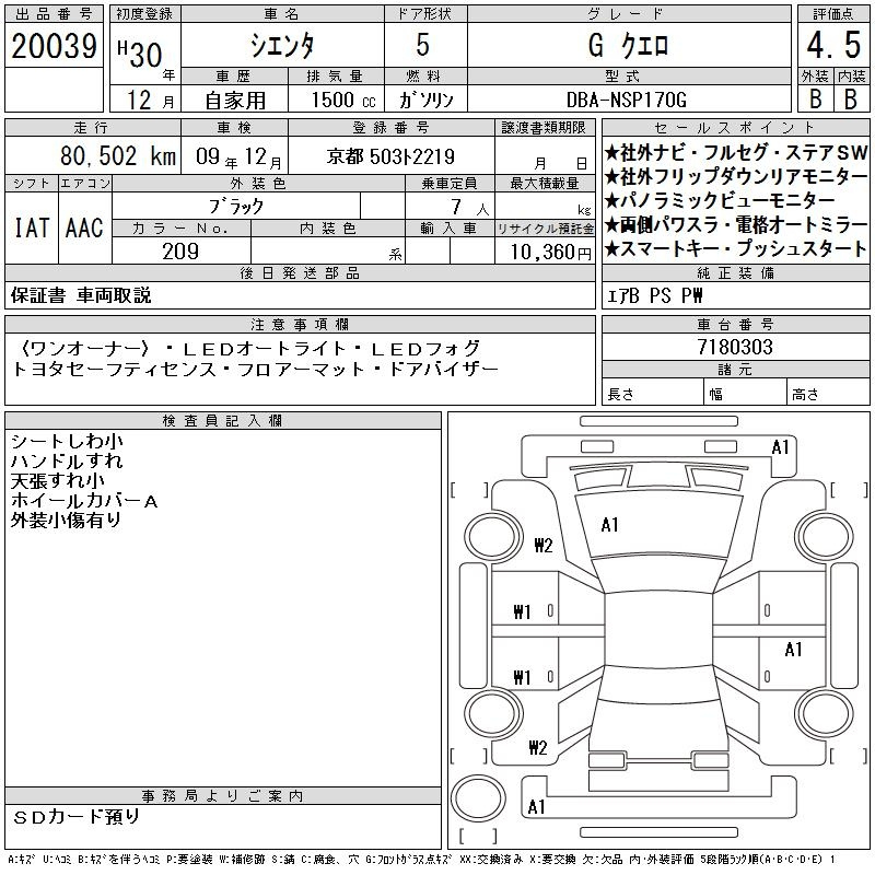 Toyota Sienta, 2018 года - Лот№20039 ★4.5