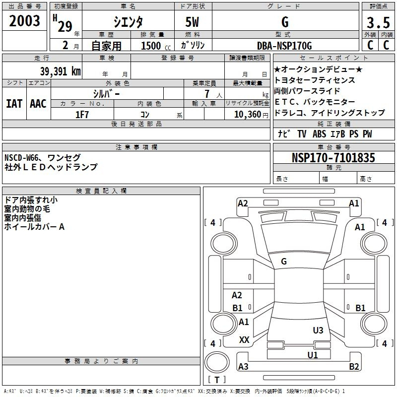 Toyota Sienta, 2017 года - Лот№2003 ★3.5