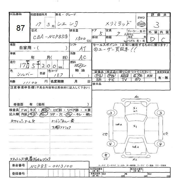 Toyota Sienta, 2005 года - Лот№87 ★3